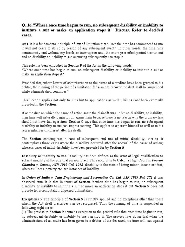 Once Time of Limitation Starts PDF Lawsuit Judiciaries