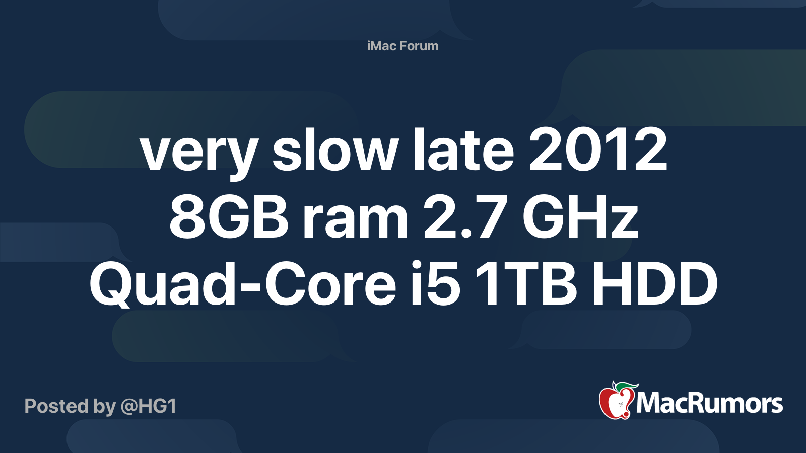 very slow late 2012 8GB ram 2.7 GHz QuadCore i5 1TB HDD MacRumors Forums