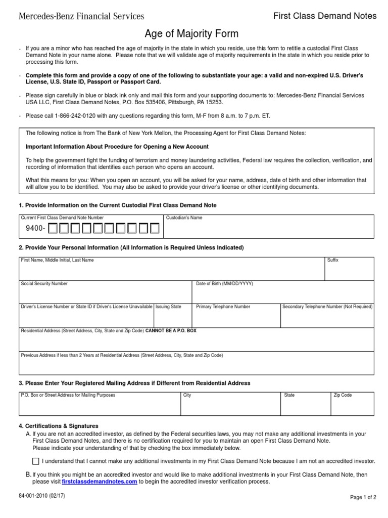 Age of Majority Form Post Office Box Investor