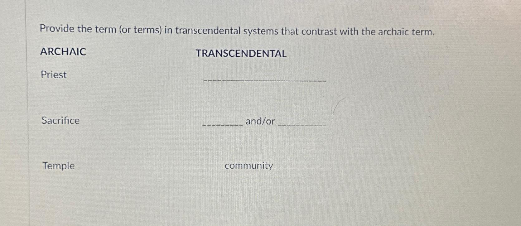 Provide the term (or terms) in transcendental
