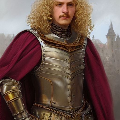 prompthunt blonde curlyhaired medieval nobleman, D&D, doublet