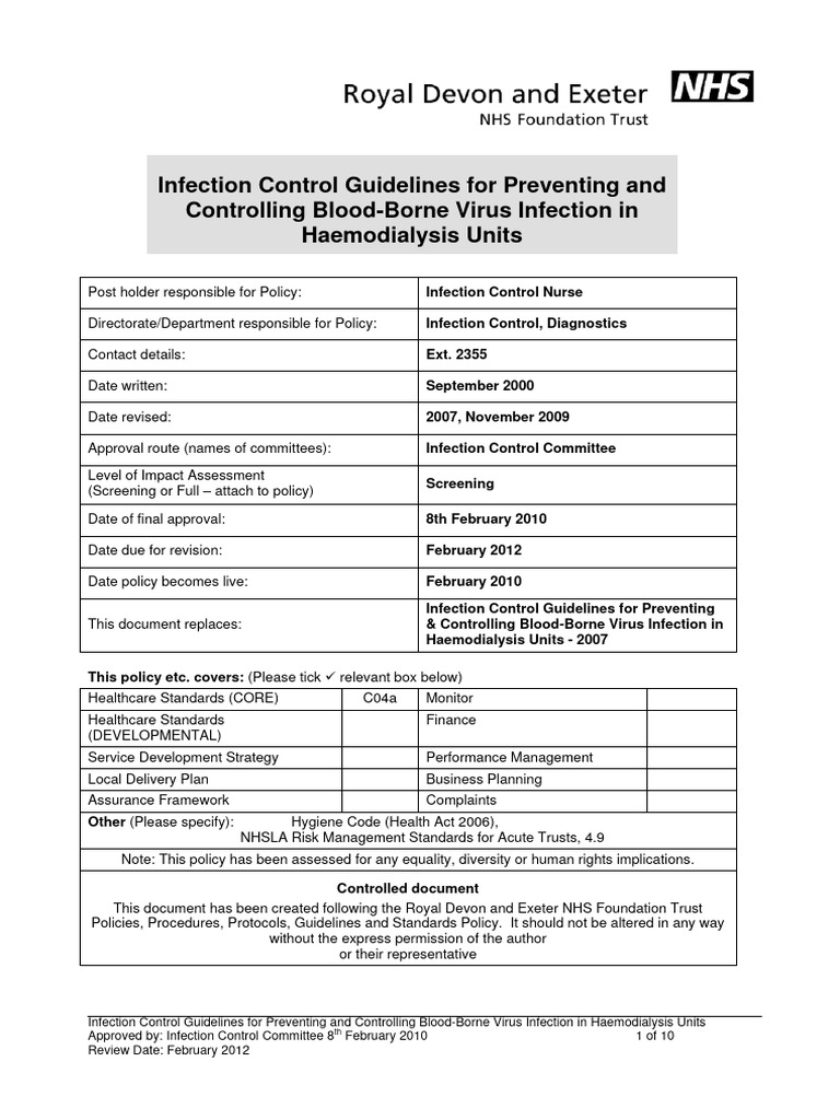 IC Guidance For Preventing and Controlling BloodBorne Virus Infection