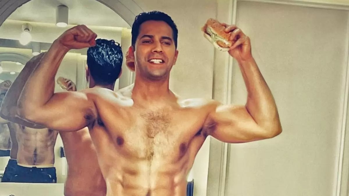 Varun Dhawan chomps on burgers, flaunts his abs on ‘cheat day