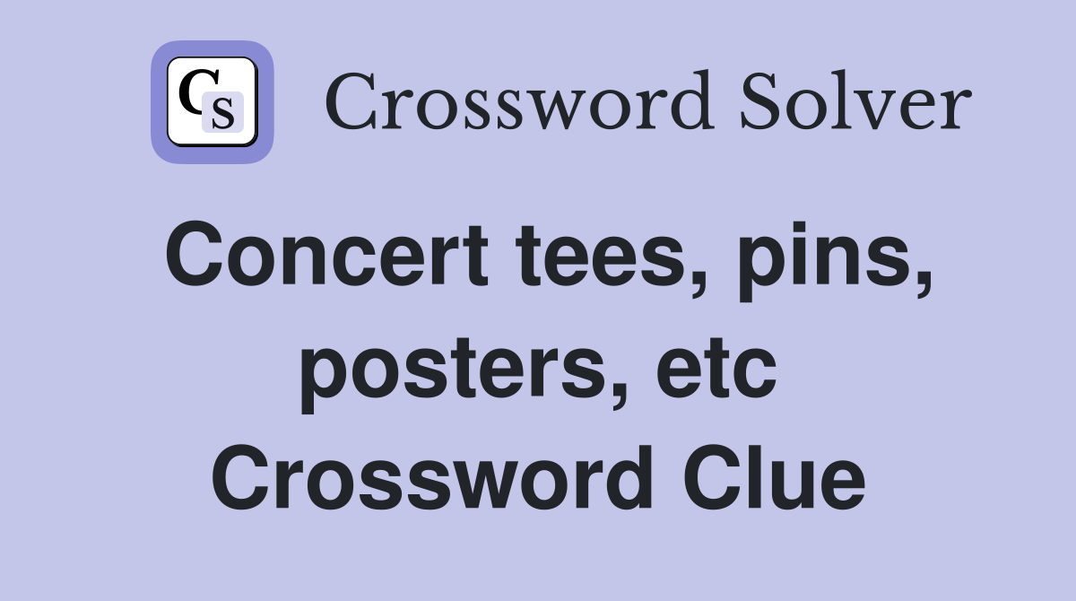 One answer found for concert tees pins posters etc nyt mini crossword september 4, 2024 clue. On this page you will find the concert tees, pins, posters, etc. Crossword clue answers and solutions. We’ve solved a crossword clue called “concert tees, pins, posters, etc” from the new york times mini crossword for you, see. The most recent solution we have.
