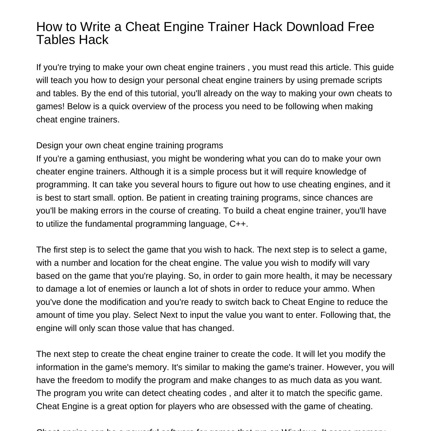 How to Write a Cheat Engine Trainer Hack Download Free Tables Hackmzpko