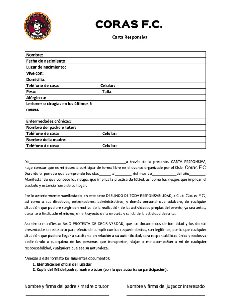 Carta Responsiva Coras FC PDF