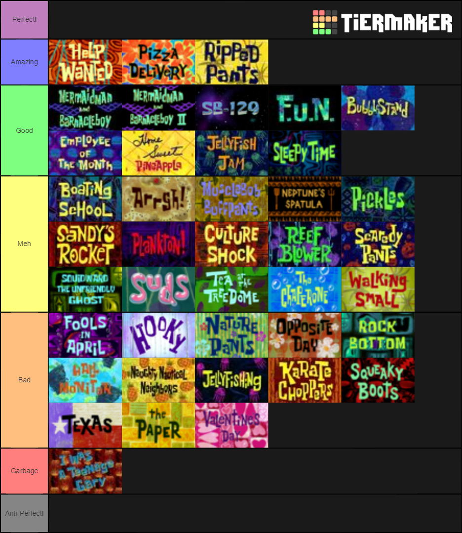 Season 5 Tier List r/spongebob
