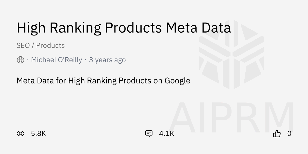 Prompt "High Ranking Products Meta Data" by "Michael O'Reilly" AIPRM