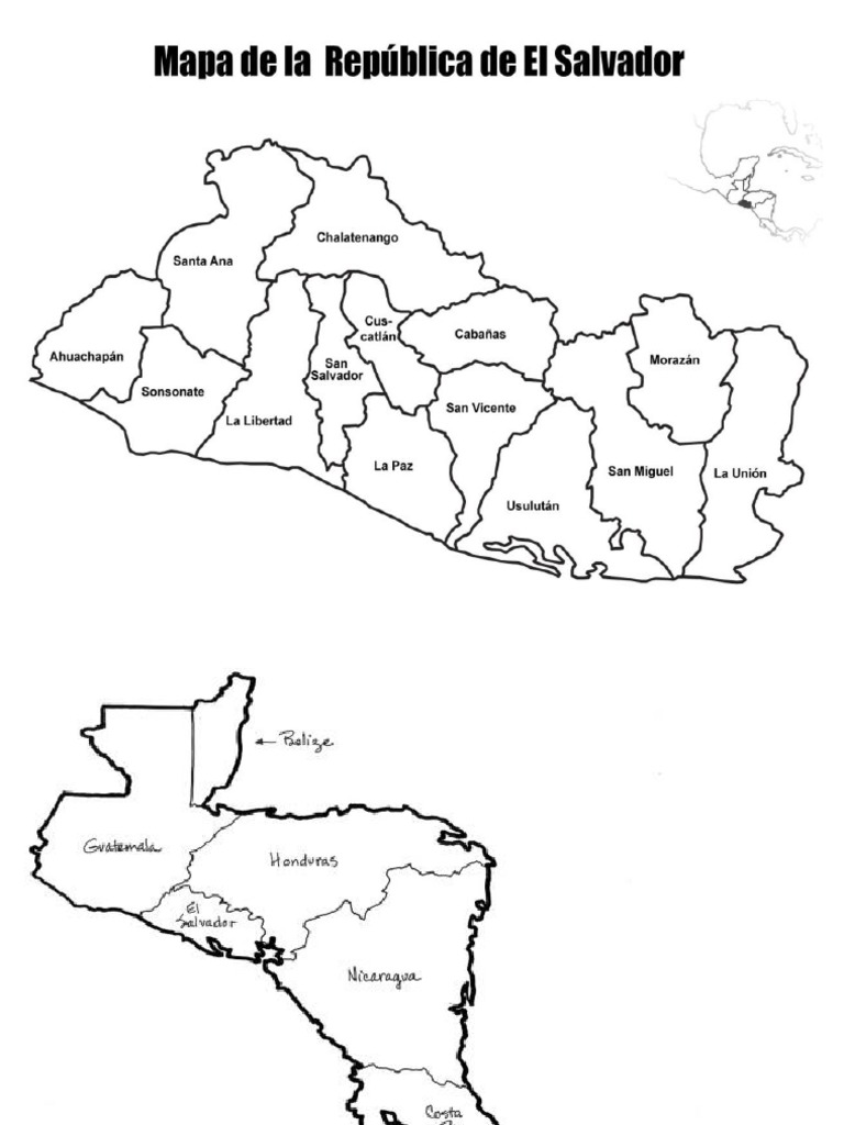 Mapa El Salvador Centro America y America para Colorear PDF