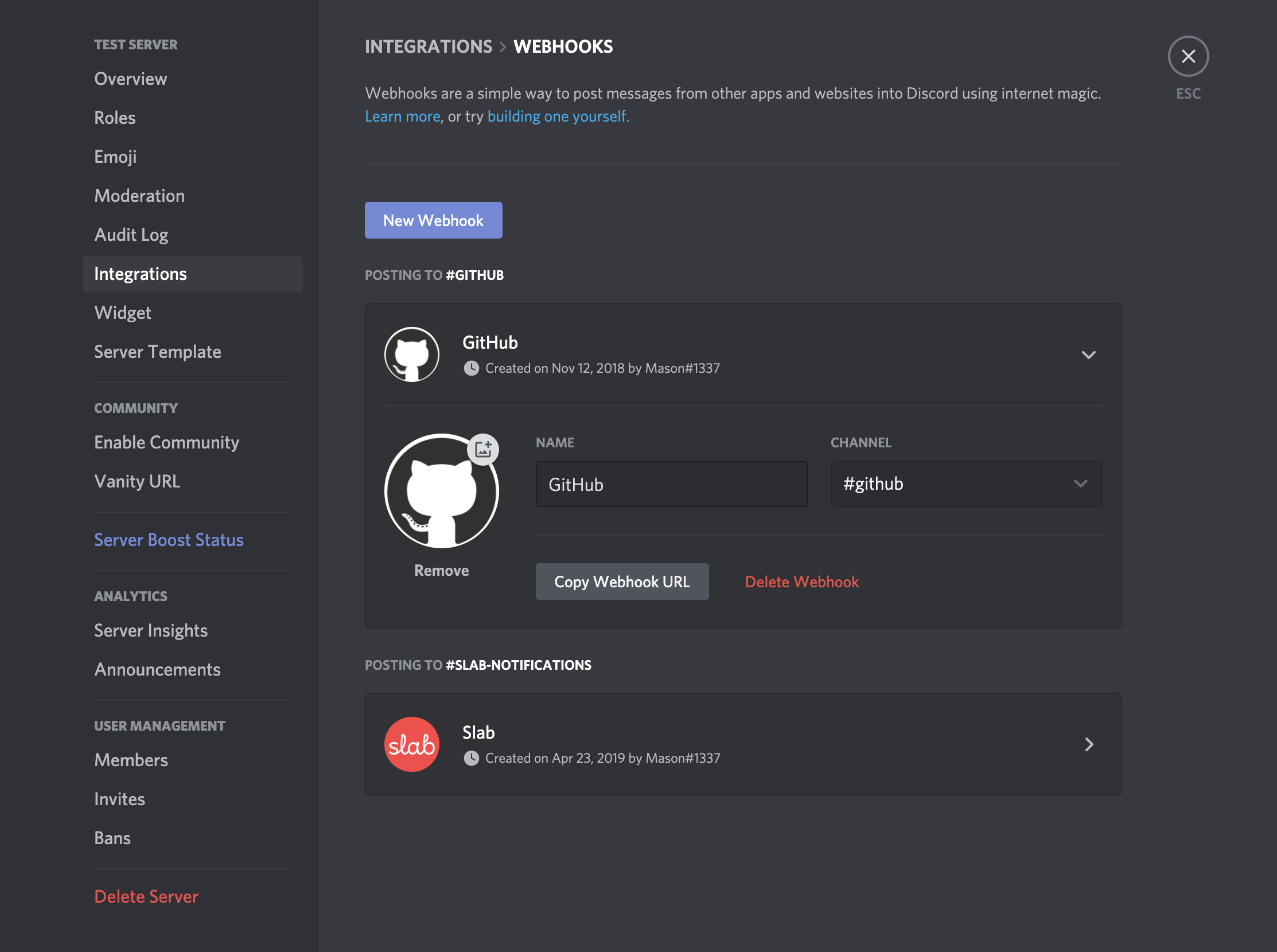 Server Integrations Page Discord