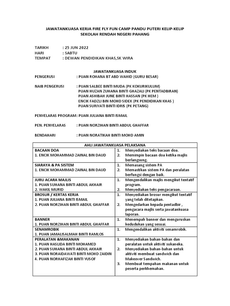 Jawatankuasa Kerja Fire Fly Fun Camp Pandu Puteri PDF