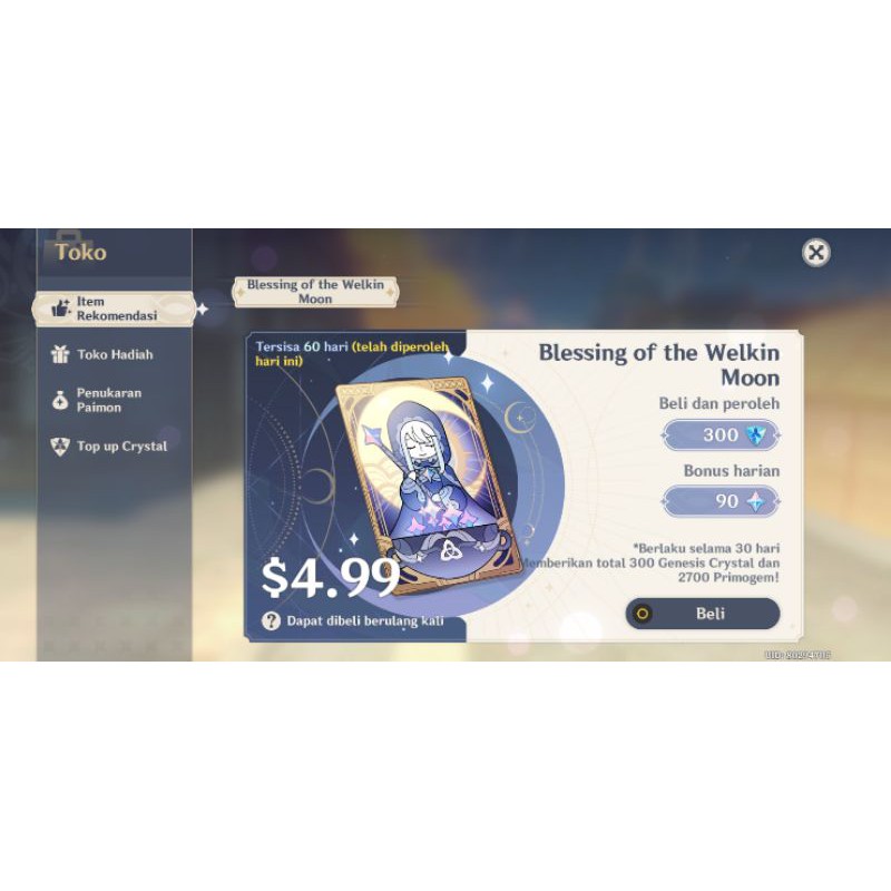 Buy Top Up Blessing of the Welkin Moon Genshin Impact 1887477 itemku