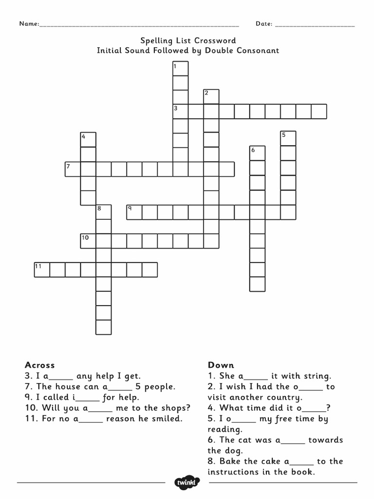 Archspelling List Crossword Initial Sound Followed by Double Consonant