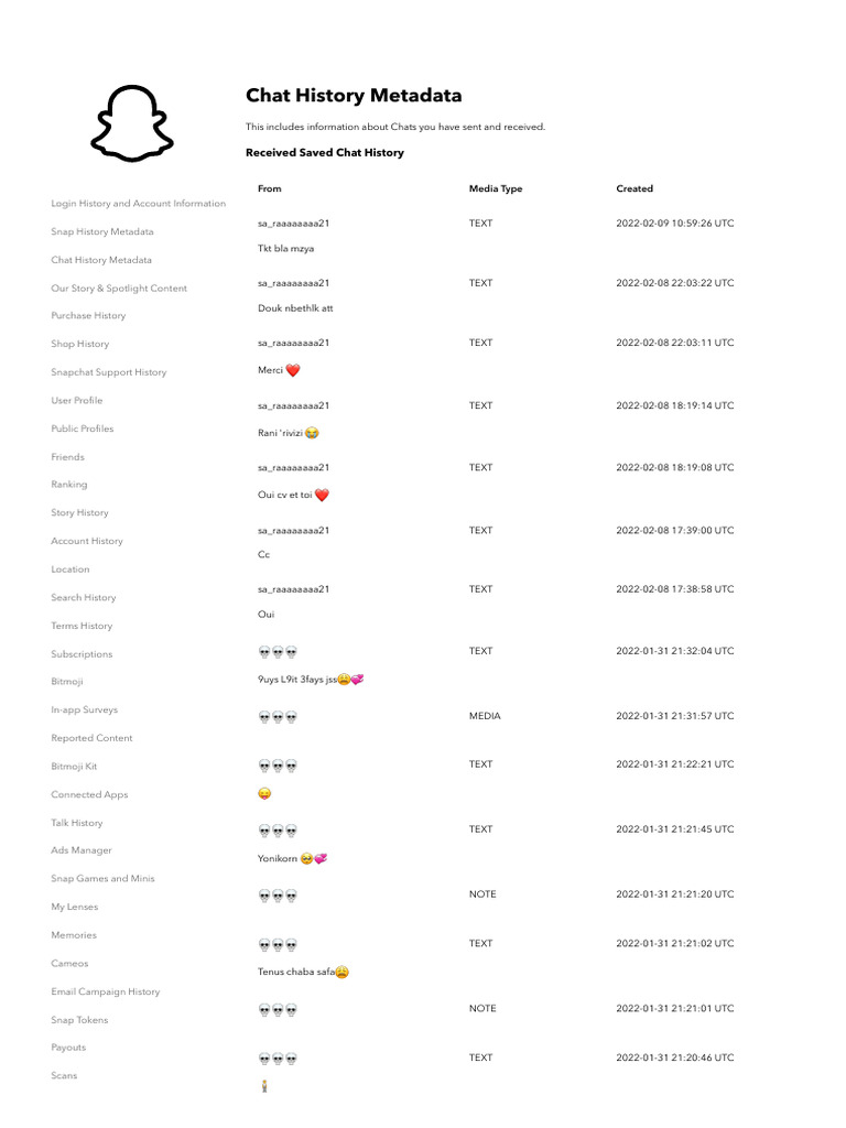 Open Chat History PDF Snapchat Mobile Software