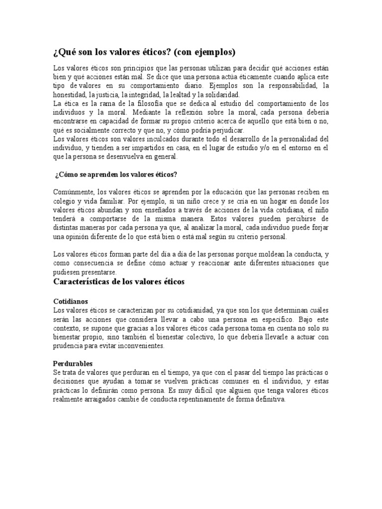 Que Son Los Valores Eticos PDF