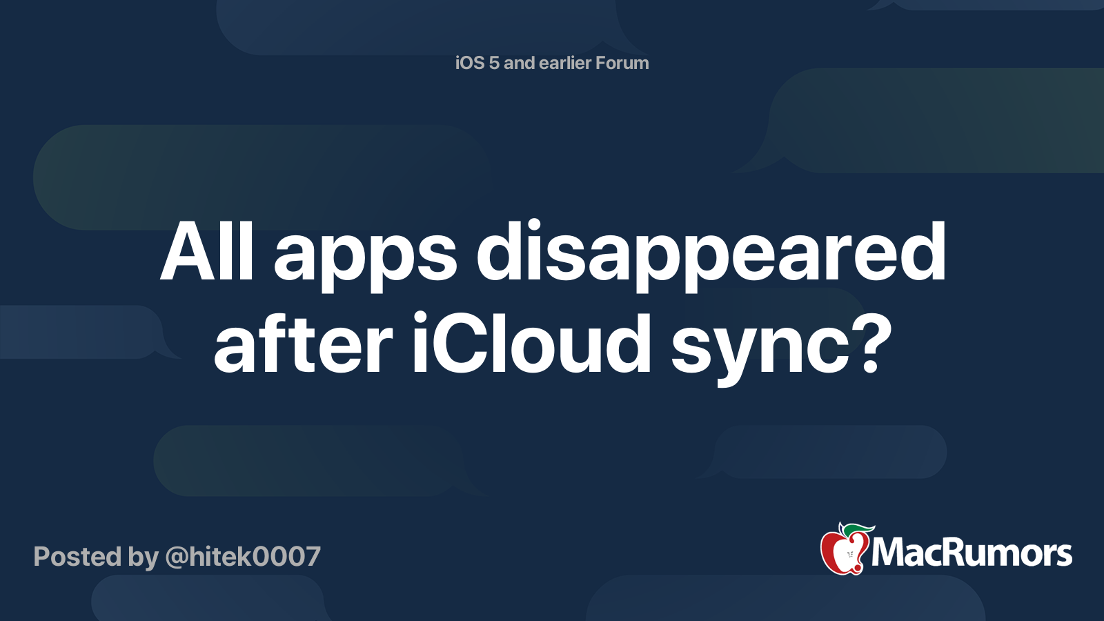All apps disappeared after iCloud sync? MacRumors Forums
