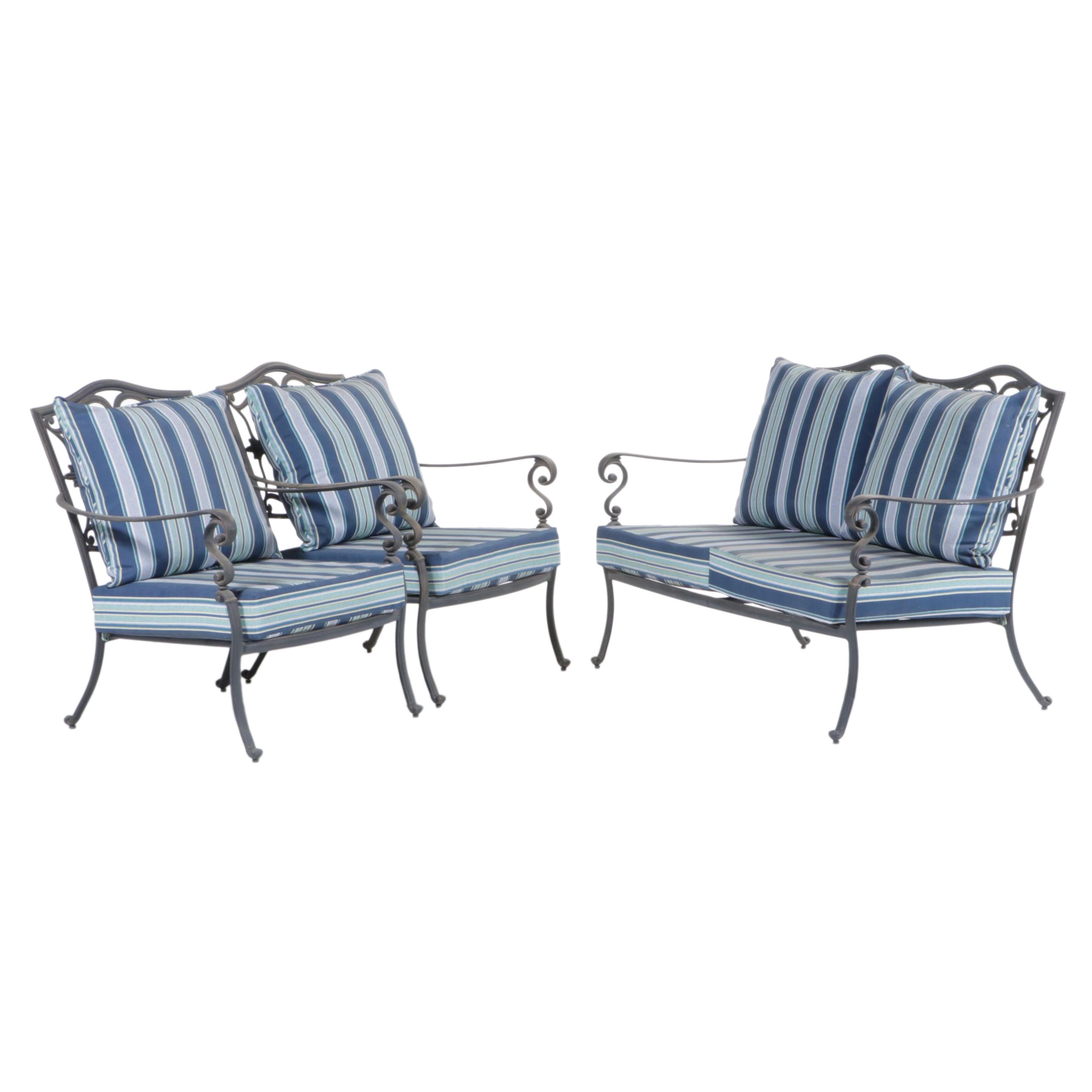 Martha Stewart Living Cast Metal Armchairs and Loveseat, Blue Striped