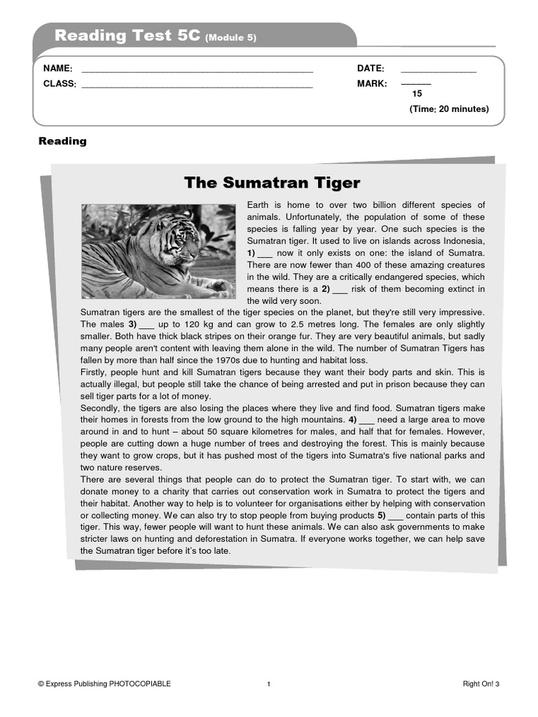 Reading Test Mod 5C PDF Tiger Hunting