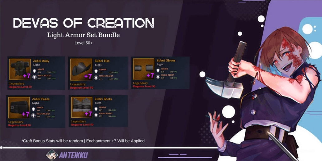 Buy Equipment Light Armor Set Bundle [Level 50+] Devas Of Creation