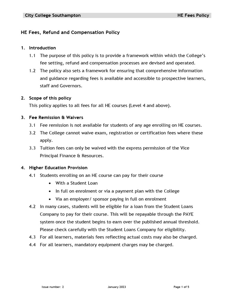 He Fee Refund and Compensation Policy Feb 2023 PDF Fee Business