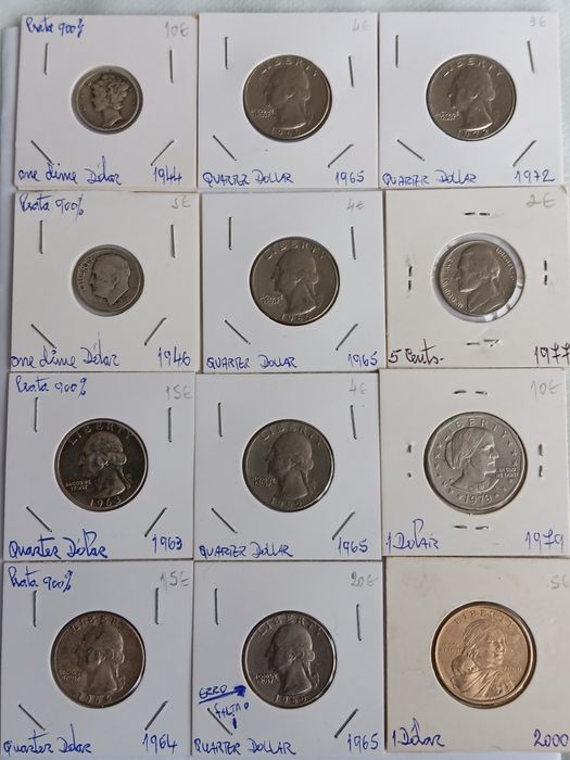 12 moedas Americanas ,diversos anos e valores. Oeiras E São Julião Da