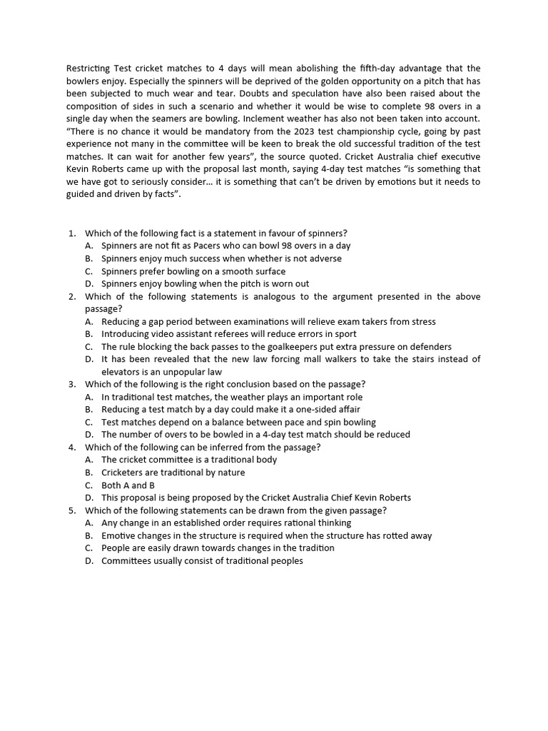 Restricting Test Cricket Matches To 4 Days Will Mean Abolishing The