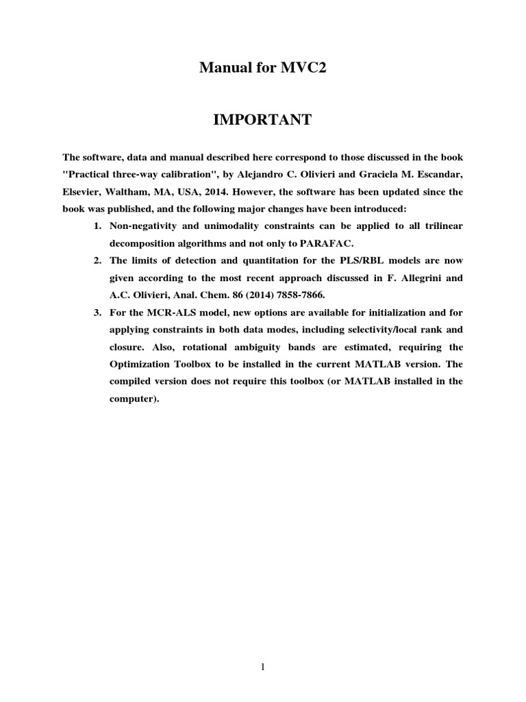 Mvc2 Manual PDF Errors And Residuals Principal Component Analysis