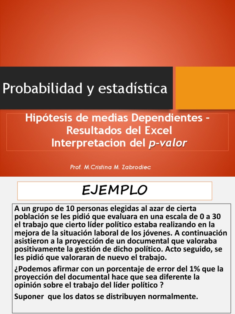 Hipótesis de Medias Dependientes PValorExcel PDF