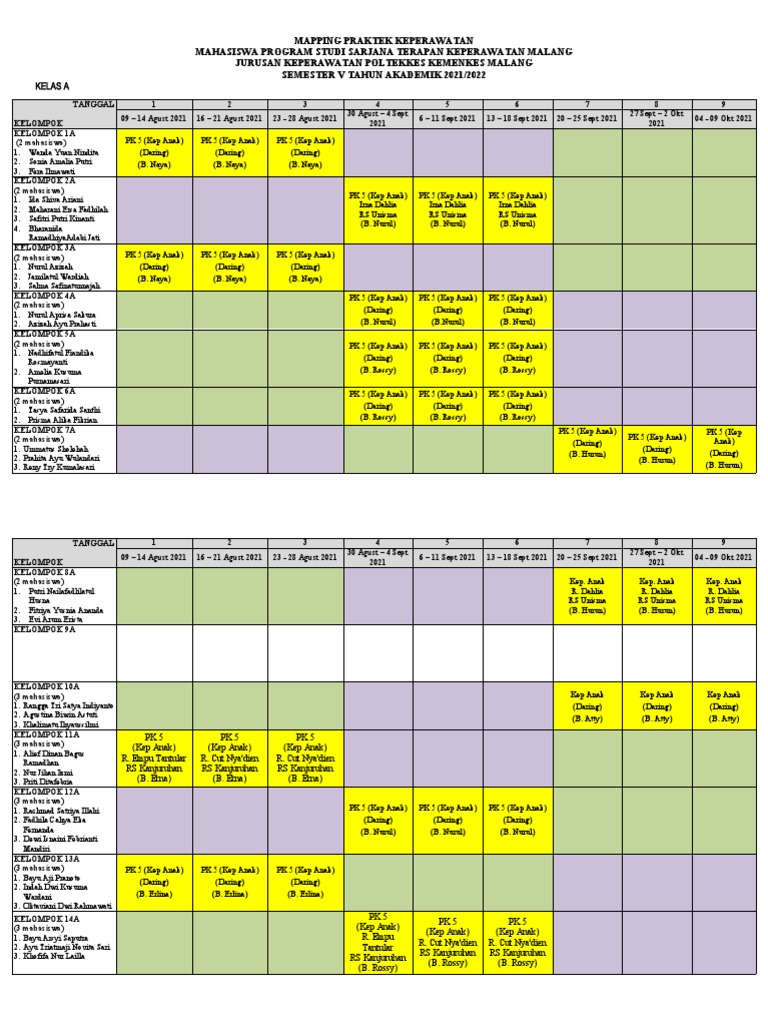 Rev 6 Agustus Jadwal Praktek Kep. Mhs. Prodi DIV Kep. Malang Smt