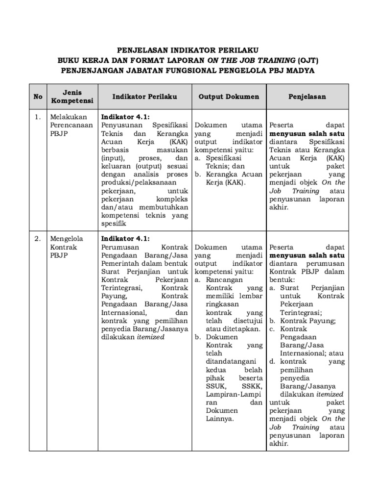 Penjelasan Indikator Perilaku OJT Level 4 PDF