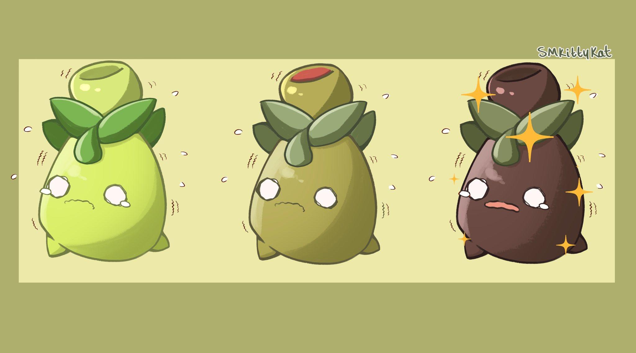 This pokémon converts nutrients into oil, which it stores in the fruit on its head. The oil that comes out of its head has a very strong bitter taste, and it is not suitable for consumption. It can easily go a whole week without eating or drinking. Smoliv pokémon serebii.net pokédex providing all details on moves, stats, abilities, evolution data.