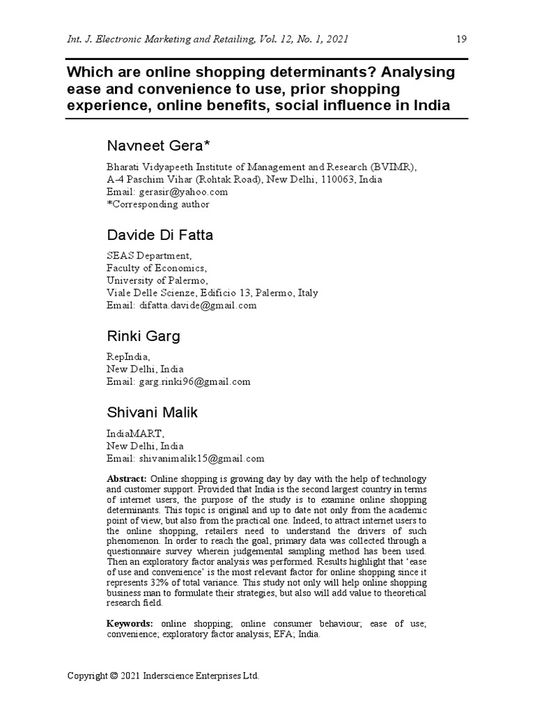 Which Are Online Shopping Determinants Analysing Ease and Convenience