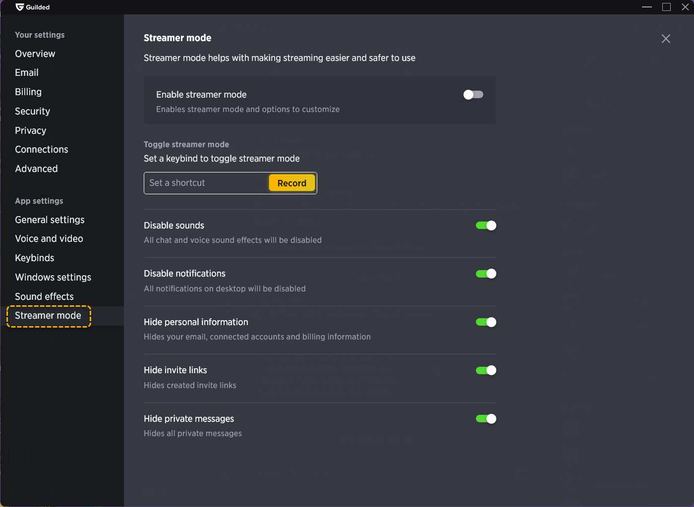 Streamer mode Guilded