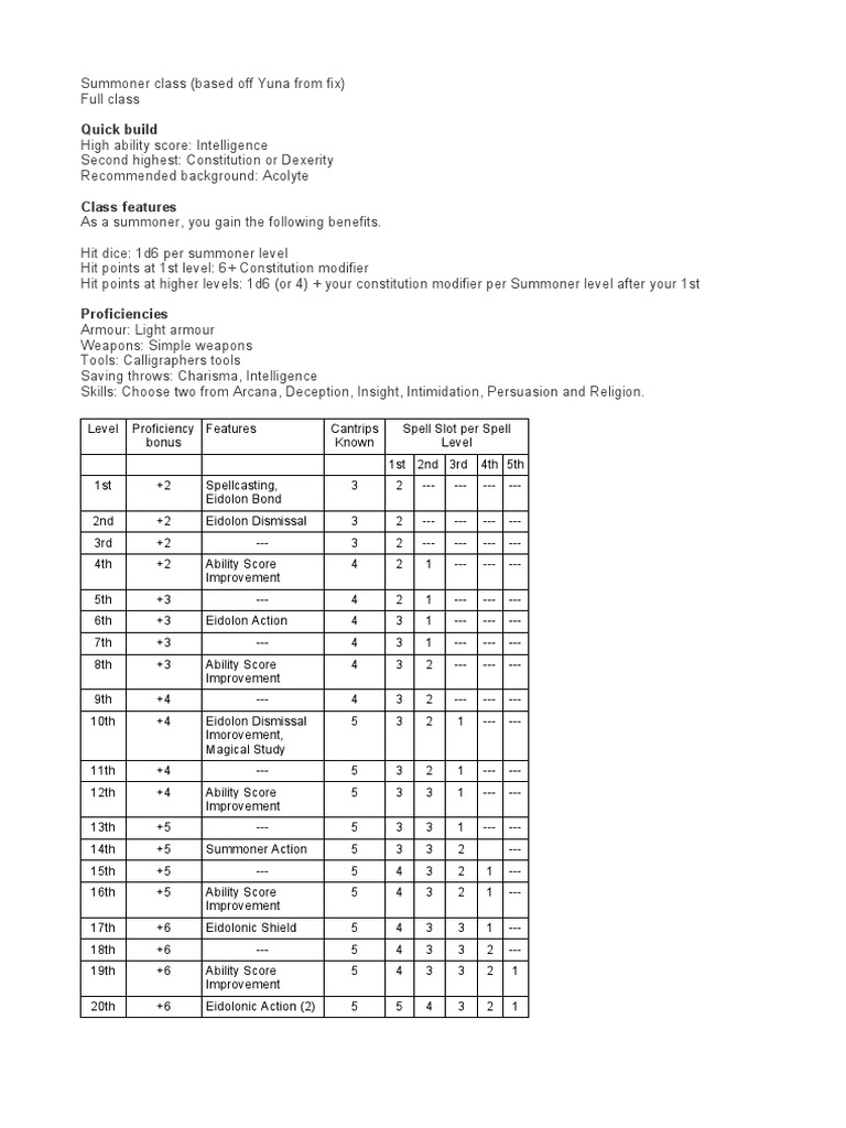 Summoner Class DND 5e Homebrew PDF