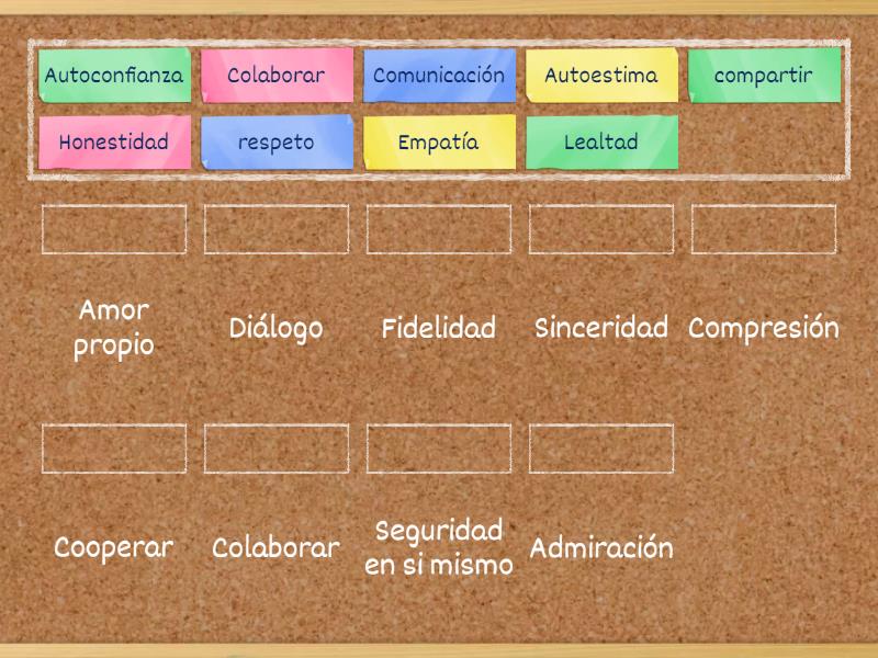 Valores y sus sinónimos Une las parejas