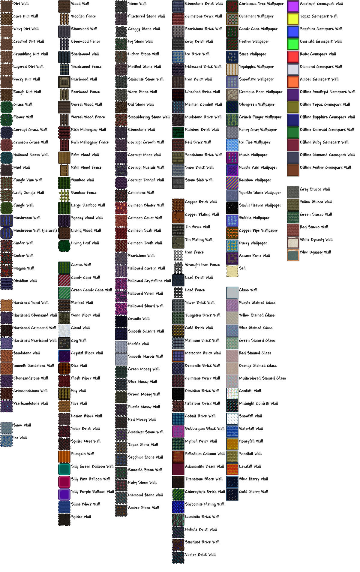 Find Out All The Walls In Terraria, A Sandbox Game With Various Blocks And Items.