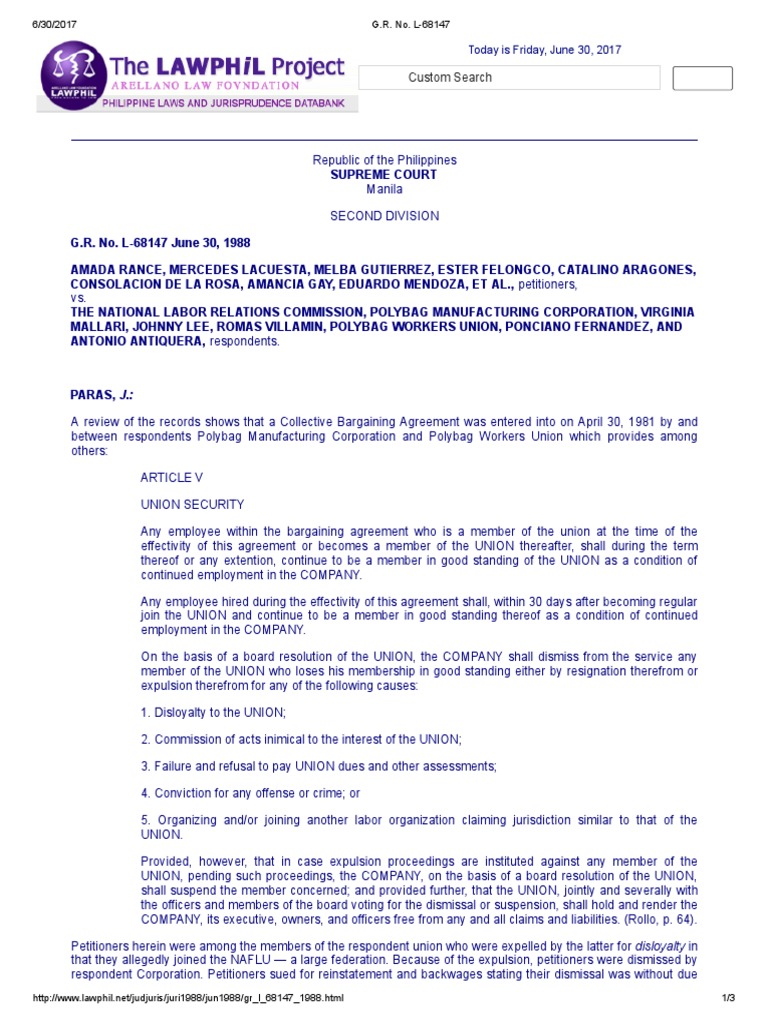Rance v. NLRC PDF Layoff Trade Union