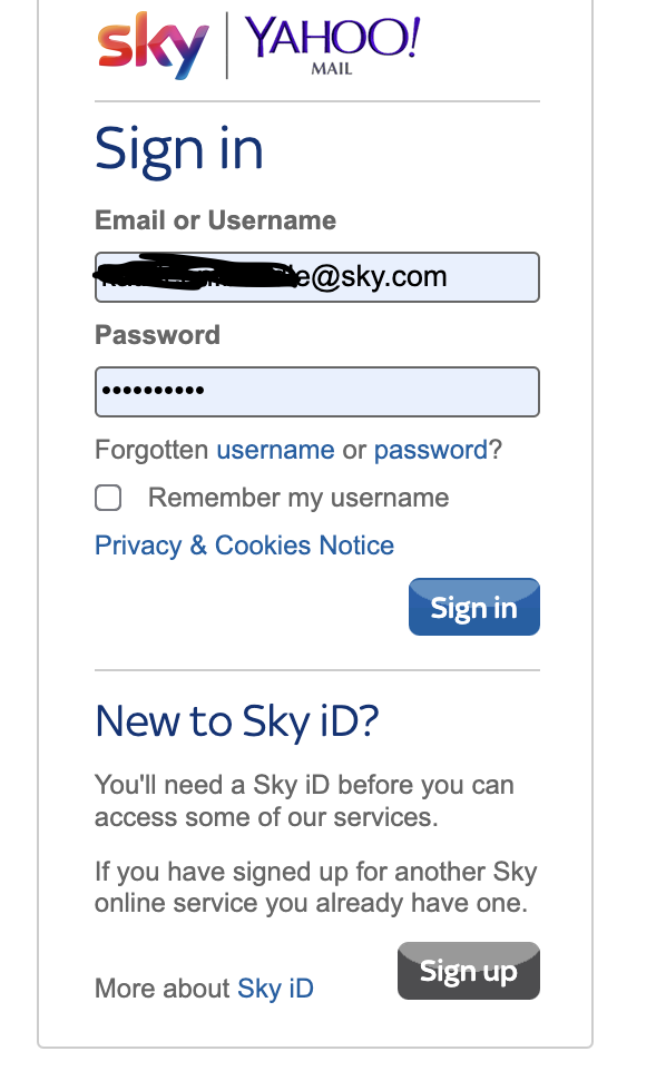 Answered email verification code is sent to my sky.... Page
