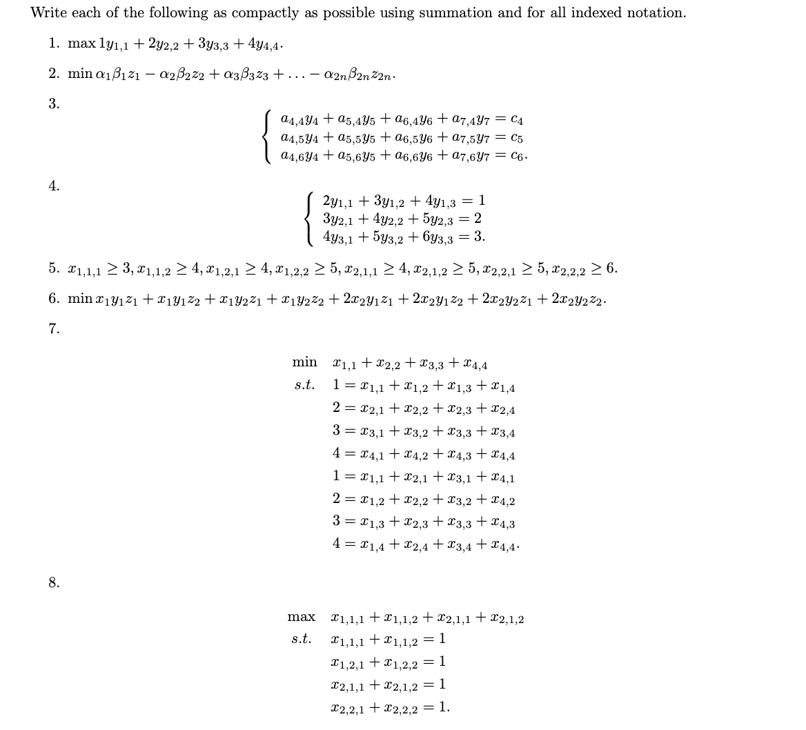 Solved 1. max1y1,1+2y2,2+3y3,3+4y4,4. 2.